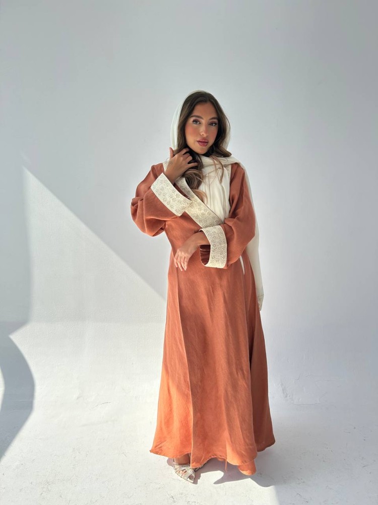 - الخامة: عباية قماش لنن ، يمنحكِ مظهراً عصريًا وأنيقًا